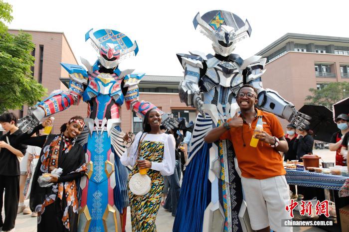 图为肯僧亚青年正在举动现场取机甲开影。杨宗衰 摄